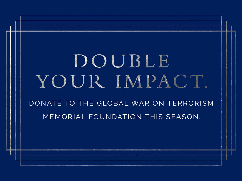 Thanks to a generous donor, every donation will be matched dollar for dollar through the end of the year. All gifts are tax-deductible and directly support building the national Memorial honoring all who have served and sacrificed in the Global War on Terrorism.